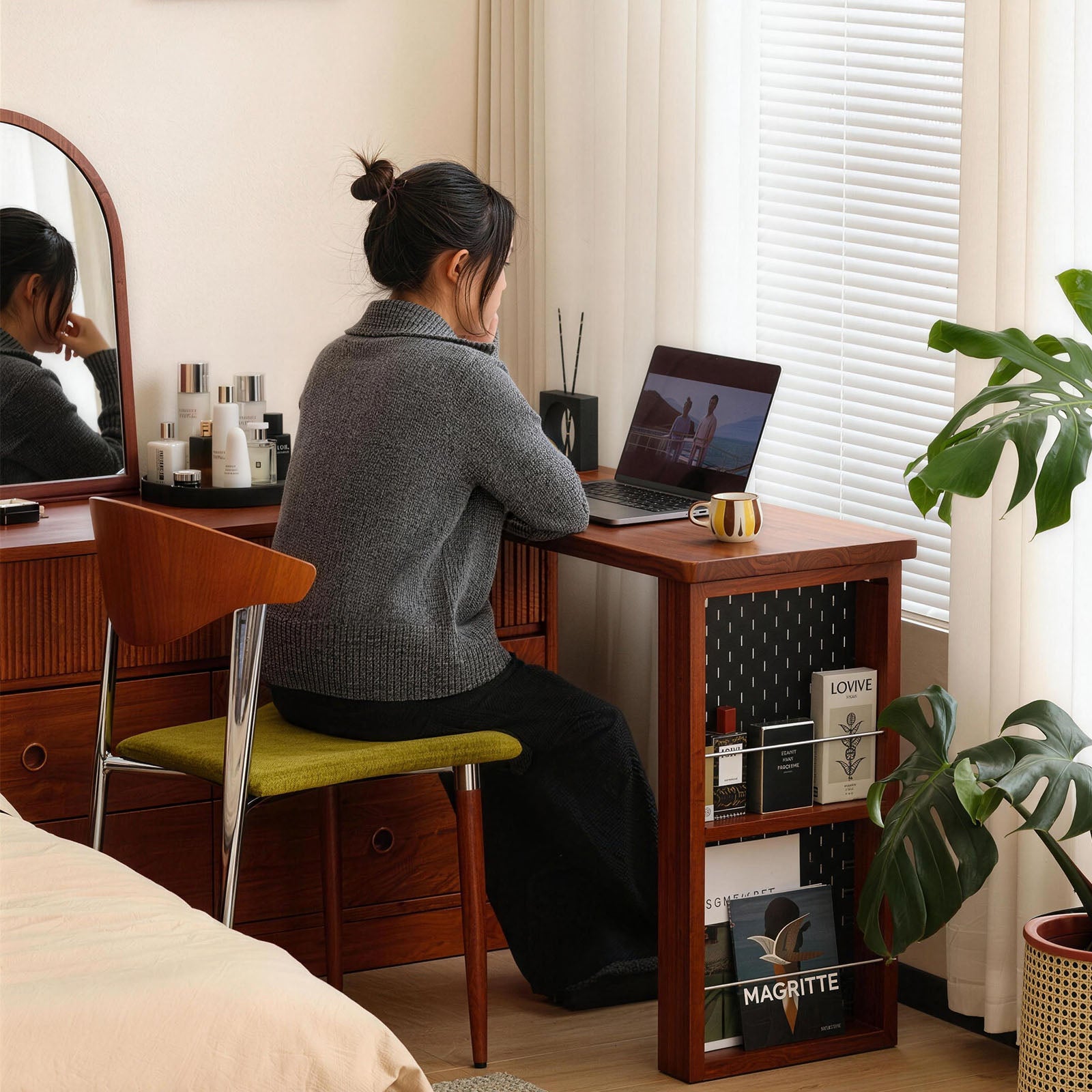 Dual-Zone Desk for Makeup & Work: Why buy two desks when one does it all? The dual-desktop design allows you to use the fixed top for daily skincare and vanity, while the extendable section serves as a dedicated laptop or writing station. Work and makeup can coexist seamlessly without your items getting in each other’s way.