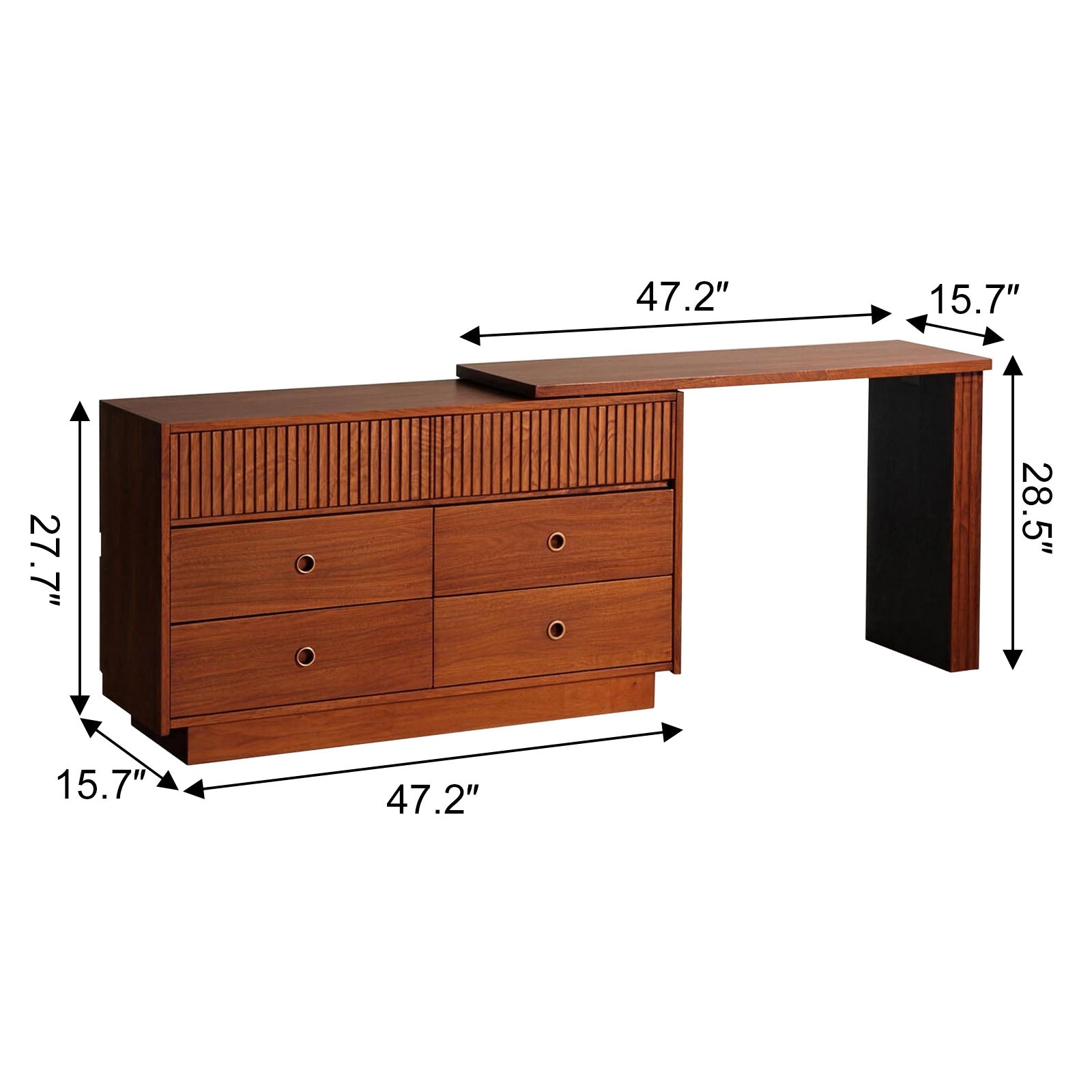 Infinitely Versatile Layouts (L-Shape & Straight): Designed to adapt to your room’s unique footprint. Place it in a straight line for a classic look, or use the L-shape configuration to tuck perfectly into awkward corners. The extendable desktop can be positioned on the left or right, allowing you to switch layouts based on your room setup or whether you place it by the bed, at the end of the bed, or in the living room as a hallway console.