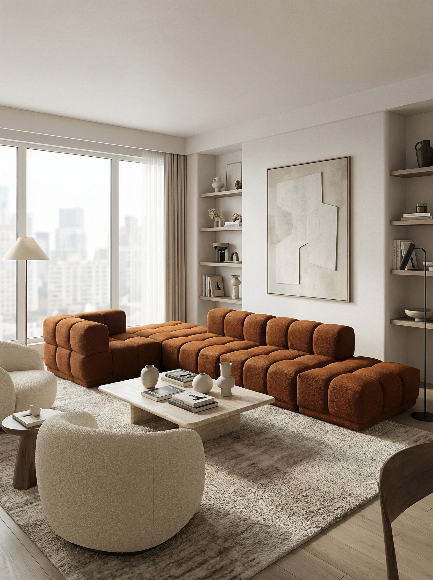 Infinite Waffle Modularity: Build, deconstruct, and reconfigure your sofa to suit your lifestyle. The balanced structure and crisp grid silhouette allow you to play with layouts endlessly.
